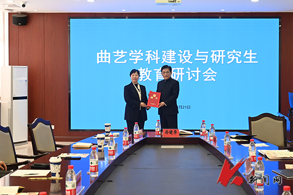 21日,孙晓华出席由艺术学院主办的曲艺学科建设与研究生教育研讨会。会上,孙晓华为林宏鸣颁发艺术学院特聘教授聘书,同时表示希望以此活动为契机,推动学校曲艺高等教育内涵式发展再上新台阶。艺术学院院长李囝围绕师资队伍建设、课程体系构建、科研平台搭建及研究生培养成效等方面,专题汇报了曲艺学科建设现状与未来发展规划。林宏鸣充分肯定了学校在曲艺本科与研究生教育中的探索与实践,并从学科交叉融合、学术品牌打造、产学研协同育人等维度提出前瞻性与可操作性兼备的指导意见。在交流研讨环节,与会教师和研究生代表围绕曲艺理论研究方法论、研究生课程模块化设计、专业实践基地共建等议题深入交流。