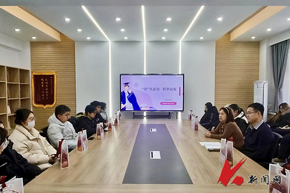 12月18日,辽宁科技大学外国语学院在博识楼A211会议室举办“‘橙’风破浪 研梦起航”考研加油会,学院领导、学办主任及2026届考研同学参加活动。