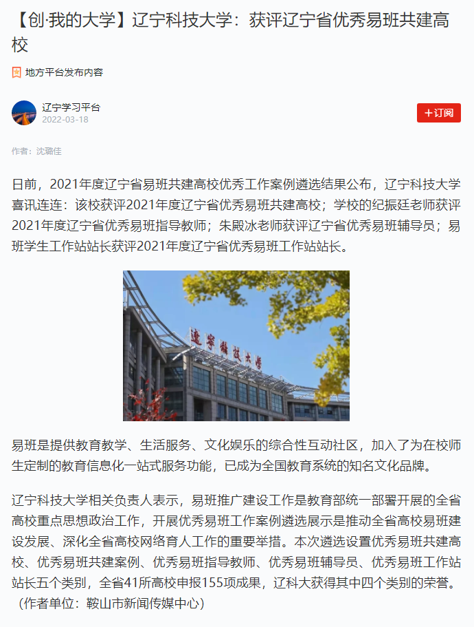 学习强国“辽宁学习平台”——辽宁科技大学:获评辽宁省优秀易班共建高校 ...