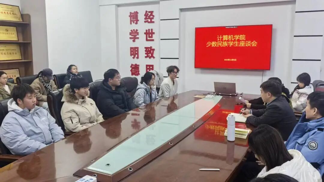 为铸牢中华民族共同体意识、关爱少数民族学生成长,12月5日下午,计算机学院召开少数民族学生座谈会。学院党委副书记由济恺、副院长陶冶、学办主任隋丽玲、团委书记丁一卓与各民族学生代表面对面交流,共话发展。