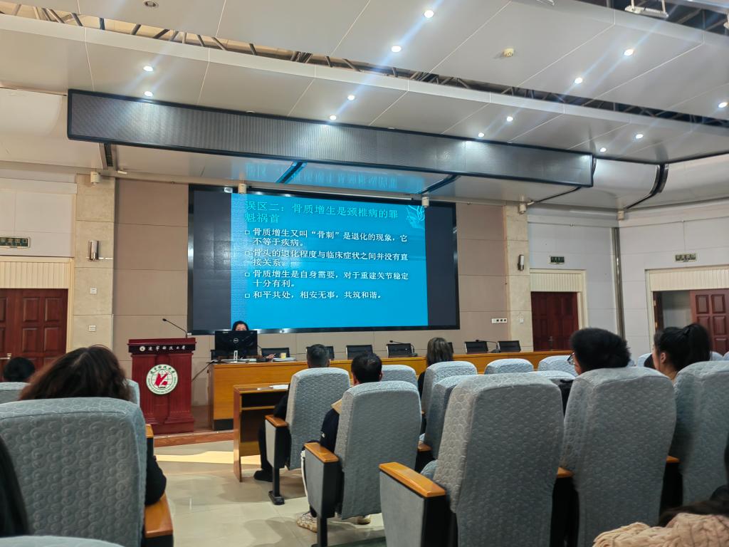 10月24日,学院工会组织教职工参加“正确认识颈椎病”专题健康知识讲座。