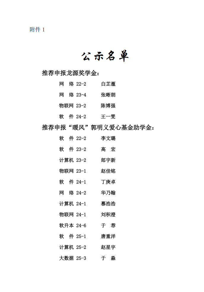 计算机与软件工程学院 2024-2025 学年度 校外奖(助)学金人选公示