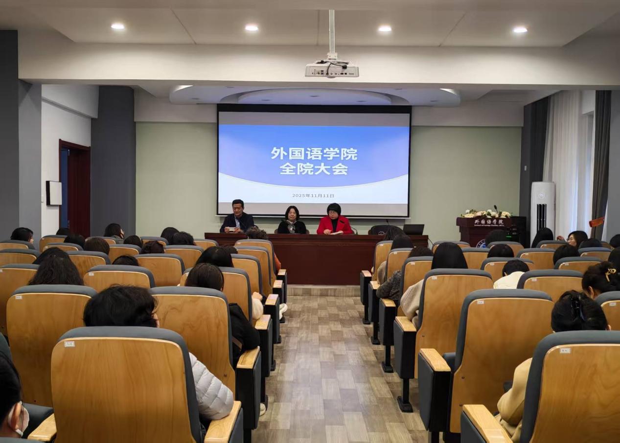 11月11日下午,外国语学院在博识楼A208会议室召开全院教职工大会,会议由党委书记王晓建主持,全体教职工参会。会议聚焦教学质量提升、教风学风建设及学生管理等核心议题,对下一阶段重点工作作出全面部署。