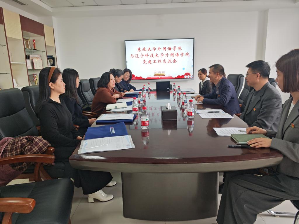 3月14日,辽宁科技大学外国语学院党委书记王晓建、四位教工党支部书记以及英语专业负责人一行前往东北大学外国语学院进行调研交流。东北大学外国语学院党委书记张满胜热情接待并亲自陪同。