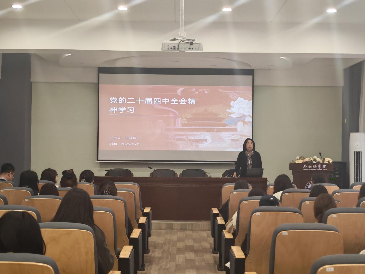 此次专题思政课,以理论阐释与现实关联相结合的讲解方式,让全会精神真正走进学生心里。通过学院党委书记带头授课,将顶层设计与青年实际紧密结合,既帮助学生筑牢理论根基,更引导其将个人理想融入国家发展大局,为培养兼具家国情怀与专业素养的外语人才注入强劲思想动力。(撰稿人:刘金凤)