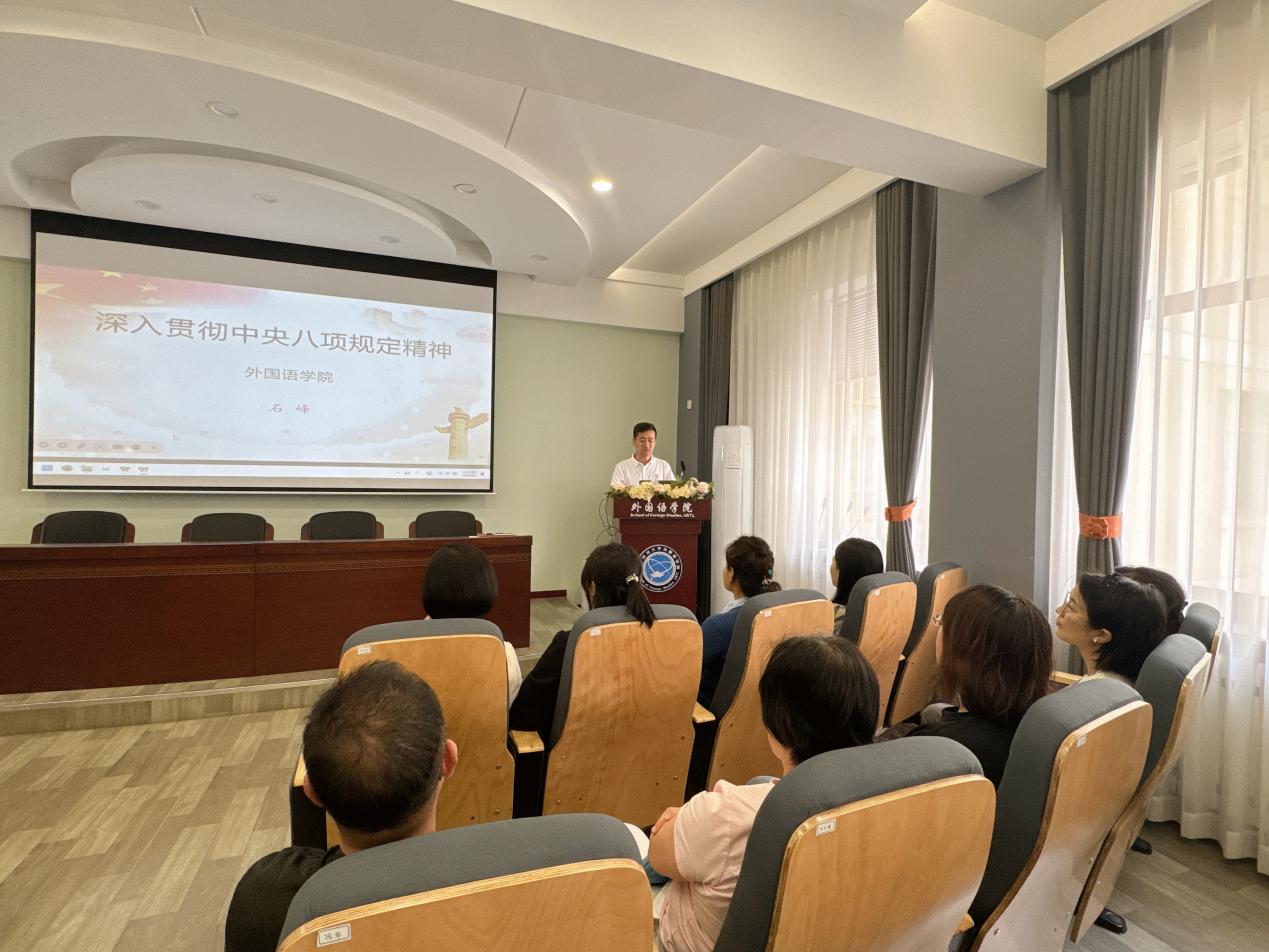 石峰深入剖析了中央八项规定的重大意义。他表示,中央八项规定不仅是对党员干部作风的基本要求,更是对整个社会风气的重要引领。对于外国语学院而言,贯彻中央八项规定精神不仅能提升学院的管理效率,还能增强教职工的凝聚力和战斗力。党员应结合自身工作实际,对照中央八项规定精神,从工作作风、廉洁自律、工作效率等方面进行全面深入的自我检查,认真查摆存在的问题。