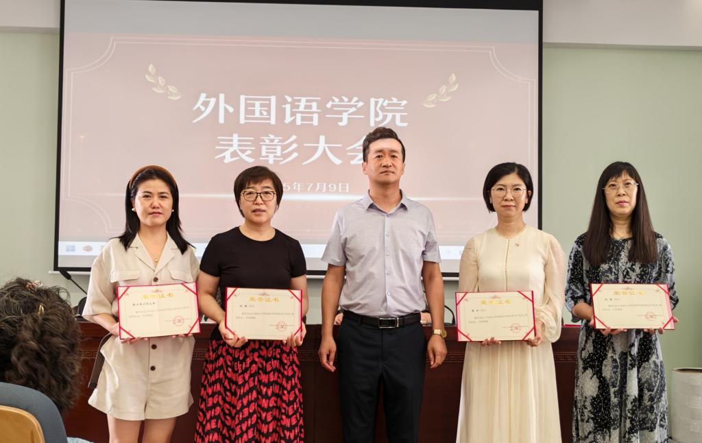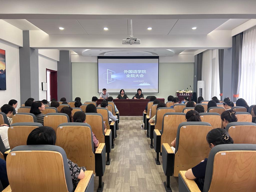 7月9日上午,外国语学院召开全院大会暨表彰大会,总结上半年工作并表彰先进,全体教职工参会,党委书记王晓建主持。