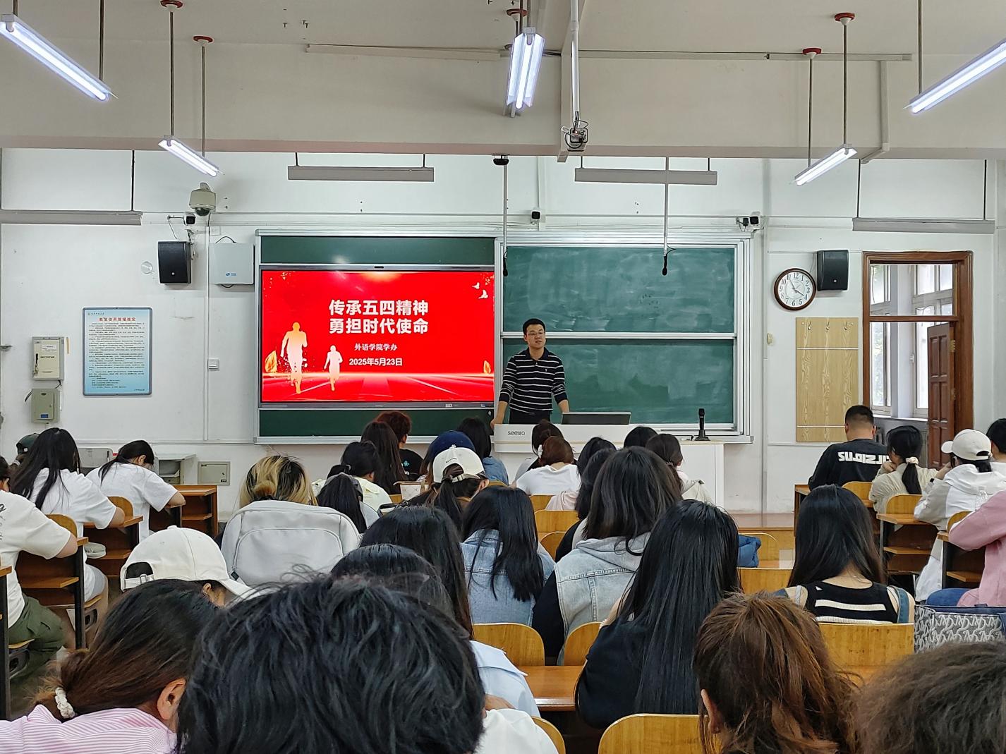 5月,外国语学院辅导员组织学生召开主题班会活动,学院各班级全体同学参加。