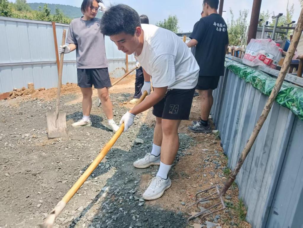 “梨彩飞扬”社会实践团队率先探索“外语+跨境电商+艺术”助农新模式。在2名指导教师的带领下,6名兼具外语和绘画技能的队员,在千山区青草沟南果梨基地完成了2面以“梨香满鞍山”为主题的墙体画创作。画作融入特产南果梨、鞍山地域文化符号及多语言标识,为跨境电商打造专属视觉背景。团队每日召开复盘会优化方案,邀请农户与电商从业者交流,涵盖外语直播话术、国际物流建议等实操内容,探索鞍山特产国际化推广新路径。“乡约盛夏队”社会实践团队聚焦社会服务,在对桩石村参与15亩农田劳作。从翻土到除草,队员通过“责任田”制度轮流负责,在实践中体会劳动价值。“筑梦童行”社会实践团队则深耕乡村儿童学业辅导,针对小学及初中学生设计差异化辅导方案。队员们采用“摸底测试+分组辅导+趣味互动”的模式,巩固课堂知识、解决学习难题,并通过数学抢答、诗词接龙等游戏激发孩子们的学习兴趣。