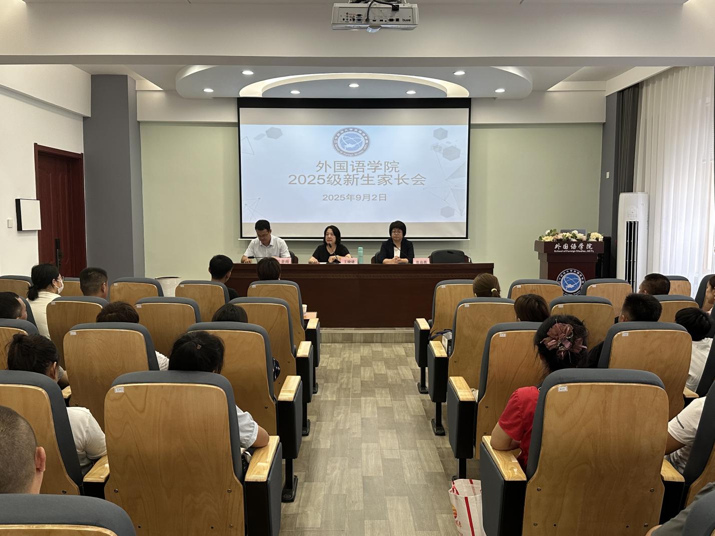 9月2日下午,辽宁科技大学外国语学院在博识楼A208会议室召开2025级新生家长会,学院领导、学办主任、专业教师及50余名新生家长共同参加了本次会议。