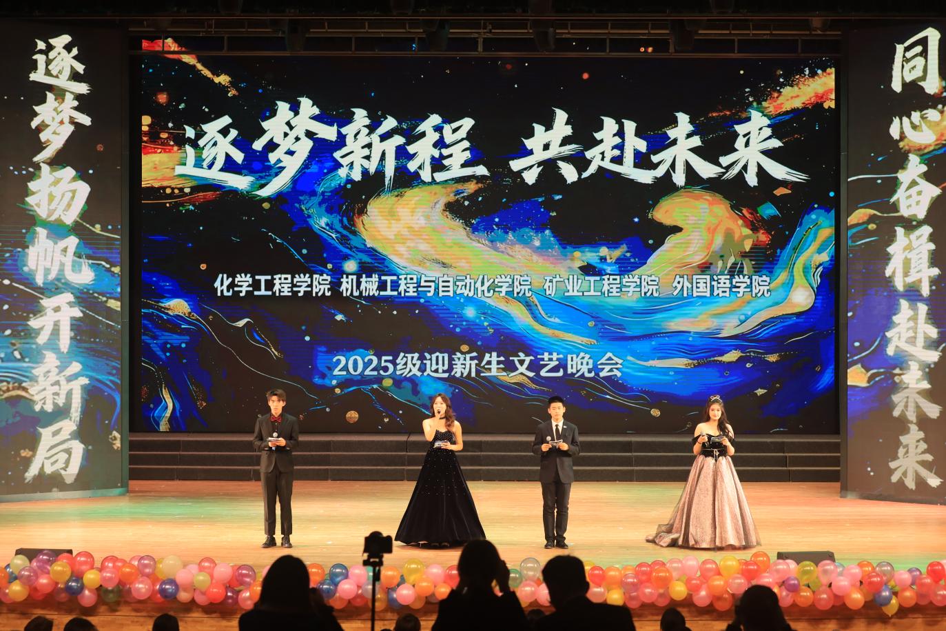 10月20日晚,辽科大外语、机械、化工、矿业学院在校礼堂联合举办“逐梦新程 共赴未来”2025级迎新晚会。四个学院领导班子成员、教师代表以及2025级新生共同观看了晚会。