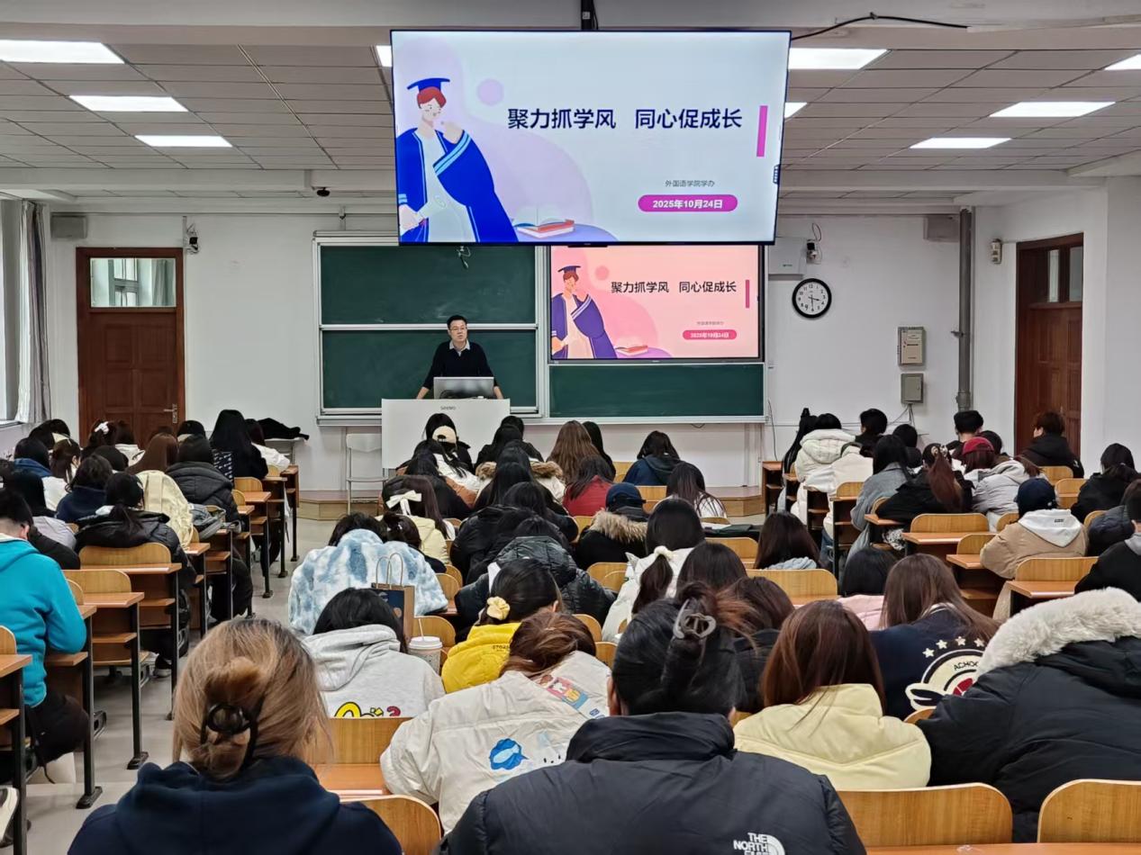 10月,外国语学院辅导员组织学生召开主题班会活动,学院全体同学参与。