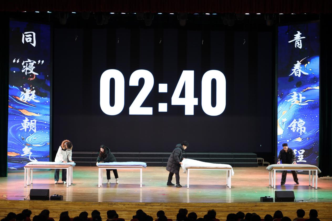 活动中,外国语学院学子亮点纷呈。在叠被子大赛环节,同学们动作娴熟、操作利落,展现扎实生活技能;文艺汇演部分,王金凤演唱的《如果爱忘了》和辛柔演绎的《春泥》以细腻的情感表达,引发全场共鸣;咸毓与房梓萱联合跨院学子带来的古典舞《繁花》,则以灵动的舞姿,为观众呈现了一场沉浸式的视觉盛宴。
