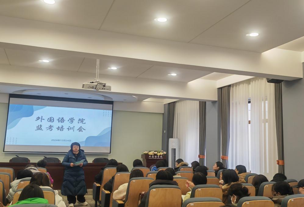 12月24日下午,外国语学院在博识楼A208会议室召开期末考试监考及考务工作会议。会议由副院长张晶薇主持,全体监考教师及考务人员参加会议。
