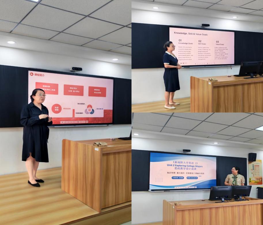 赛前,各系部经过初选,10名教师优秀教案入选决赛。比赛现场,参赛教师结合具体课程内容,详细讲解如何将思政元素巧妙嵌入教学各环节以及课程思政设计思路。赛后,评委团从教学目标精准度、思政元素融合度、教学设计创新性、学情适配性等维度,对参赛教案进行专业点评。评委们一致认为,本次教案大赛主题鲜明,从思政元素挖掘、教学目标重构、教学环节设计、评价方式创新等模块为外语课程思政设计提供了示范案例;此外,通过教学活动以赛促研,可以构建外语教学课程思政新格局,避免“两张皮”,让思政教育真正“润物细无声”。张晶薇院长在总结时强调,此次教案大赛不是单向学习,而是集体智慧的碰撞。希望全体教师以此次活动为契机,将课程思政设计融入日常教学实践,共同推动学院教学质量再上新台阶。