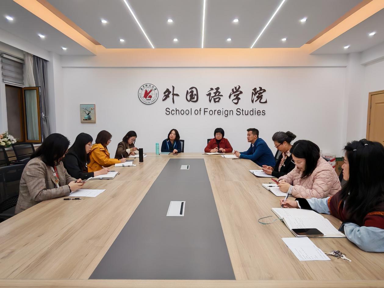 10月15日,外国语学院在博识楼A211会议室召开大学英语教学质量提升工作布置会。学院领导班子以及四个公共外语教研室的主任、副主任参会。