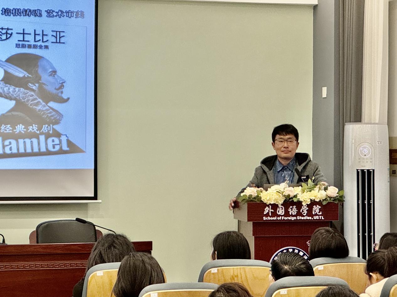 10月22日,山东大学外国语学院副教授卢攀应邀为辽宁科技大学外国语学院全体教师作题为《以赛促教,教学有法:外语教学设计优化与创新》的讲座。讲座由外国语学院院长蔡丽华主持,学院全体教师参加。