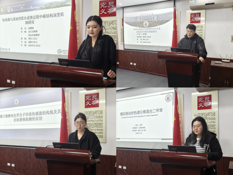 11月6日,辽宁科技大学化学工程学院在博观楼B325会议室成功举办“研途筑梦,科技自强”研究生学术报告会。本次报告会以“绿色低碳与智慧焦化”为主题,旨在推动化工领域高质量发展,提升科技自立自强能力,为学生搭建高水平学术交流平台,促进绿色低碳与智慧焦化方向的科研创新。2023级、2024级全体博士及硕士研究生参加活动。