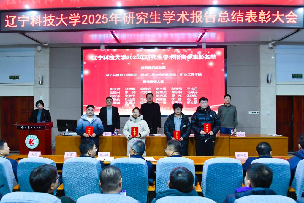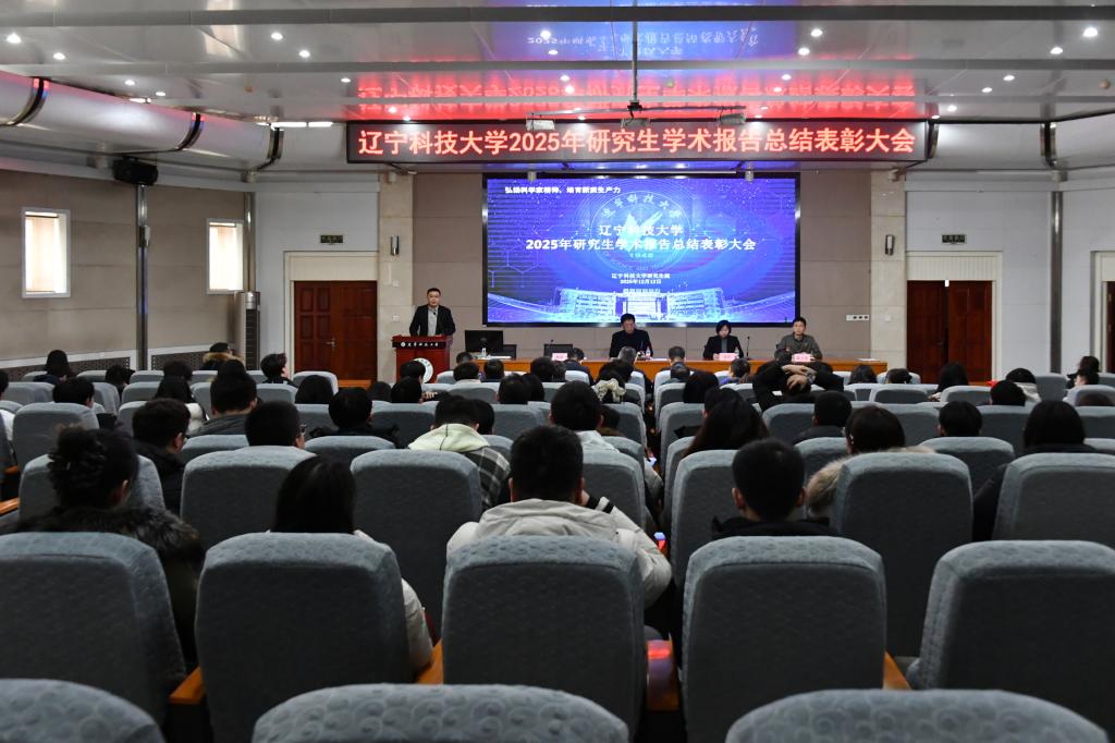12月12日下午,辽宁科技大学2025年研究生学术报告总结表彰大会在图书馆报告厅隆重举行。校党委常委、副校长张文宇出席并讲话。研究生院(党委研究生工作部)相关同志、各培养单位院长及主管研究生工作的副院长、获奖的研究生及部分学生参加了本次大会。大会由研究生院院长杨凯主持。