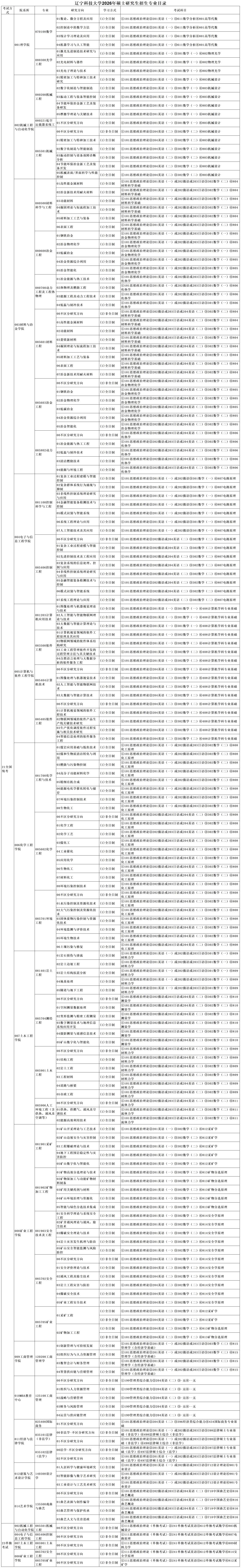 辽宁科技大学2026年硕士研究生招生专业目录