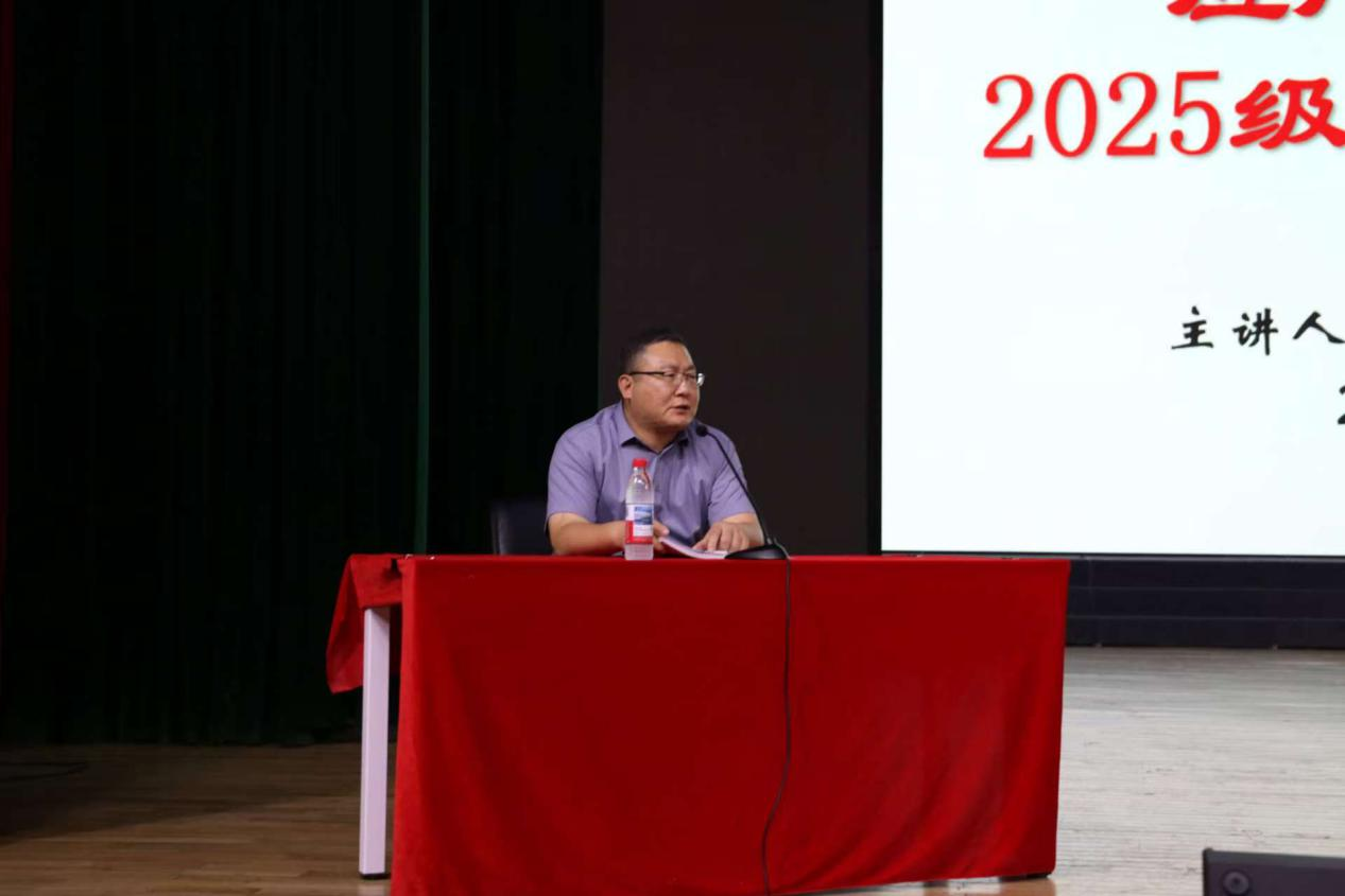 9月18日,应用技术学院在校礼堂开展了2025级新生入学教育活动。学院党委副书记兼纪委书记单中元为新生做了题为“严守纪律底线,筑牢成长基石”的宣讲。