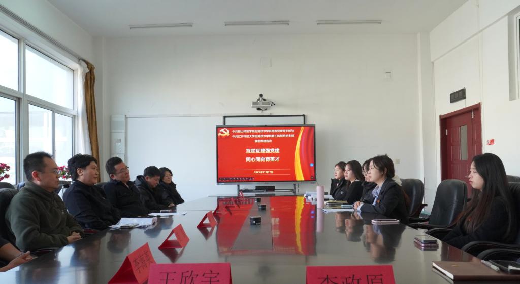 11月17日,辽宁科技大学应用技术学院教工机械系党支部与鞍山师范学院应用技术学院商务管理党支部联合开展“互联互建强党建,同心同向育英才”主题联创共建活动。活动以座谈交流的方式进行,两个支部的教师党员参加活动。