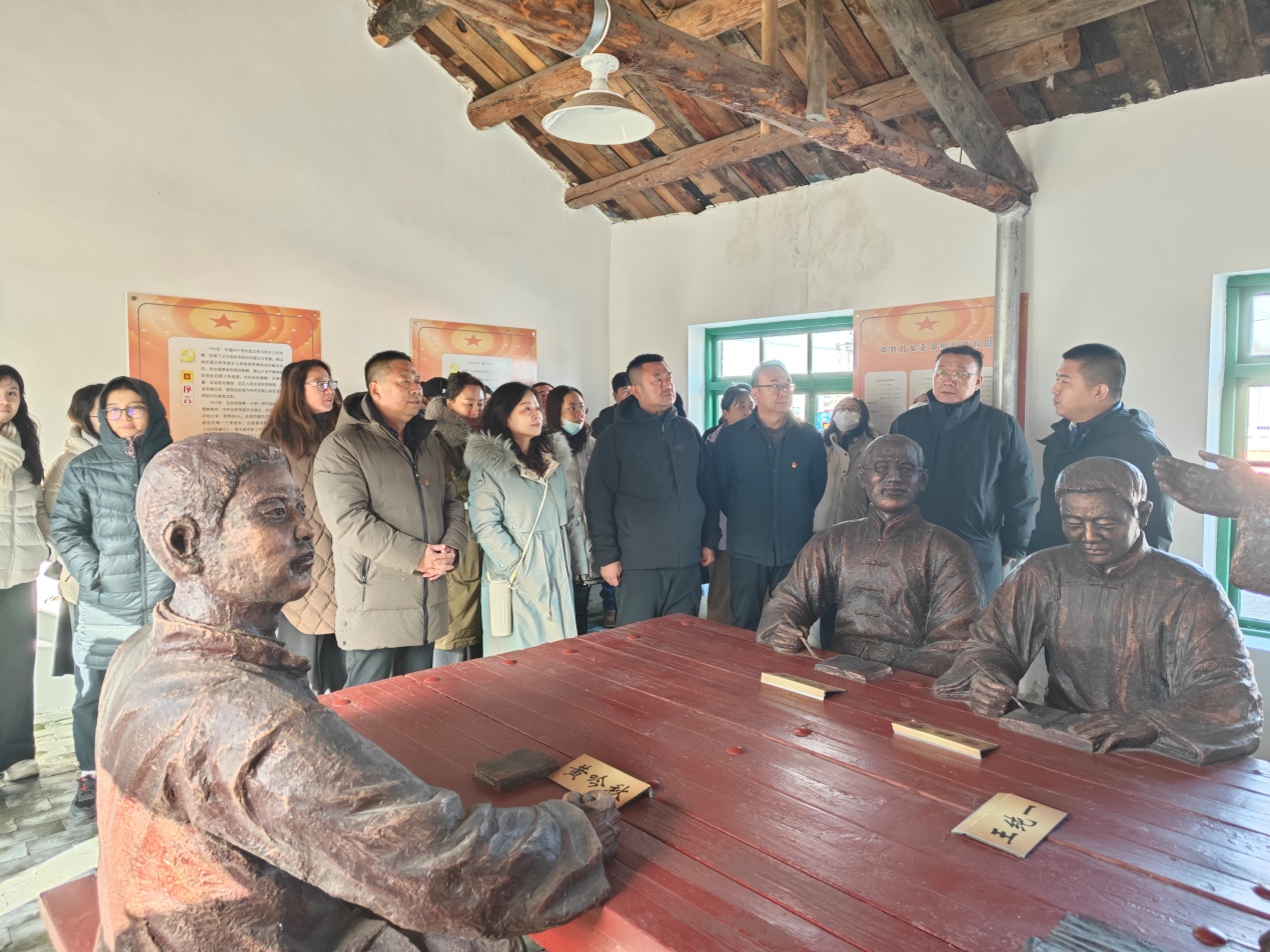 慰问结束后,团队一行前往位于黄沙坨镇的中共台安支部旧址,开展“知行合一践初心 服务乡村担使命”主题党日活动。大家在纪念馆内认真观看史料图片与革命文物,聆听生动讲解,重温入党誓词,深刻感悟早期党组织在艰苦条件下创建发展、领导革命斗争的峥嵘岁月与光辉历程。活动结束后,相关负责同志与台安县委副书记、县政府党组书记、县长常亮及黄沙坨镇领导进行了交流,就深化校地合作、共推乡村振兴交换了意见。同时表示,将持续落实“干部驻点、单位做后盾”机制,在党建共建、产业培育、人才培养等方面协同发力,为全面推进乡村振兴持续注入高校智慧与力量。